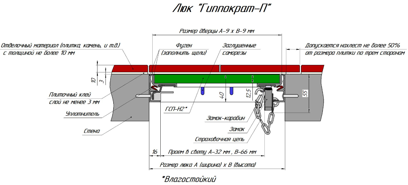 Люк под плитку 200х300 (ш*в) ГИППОКРАТ-П